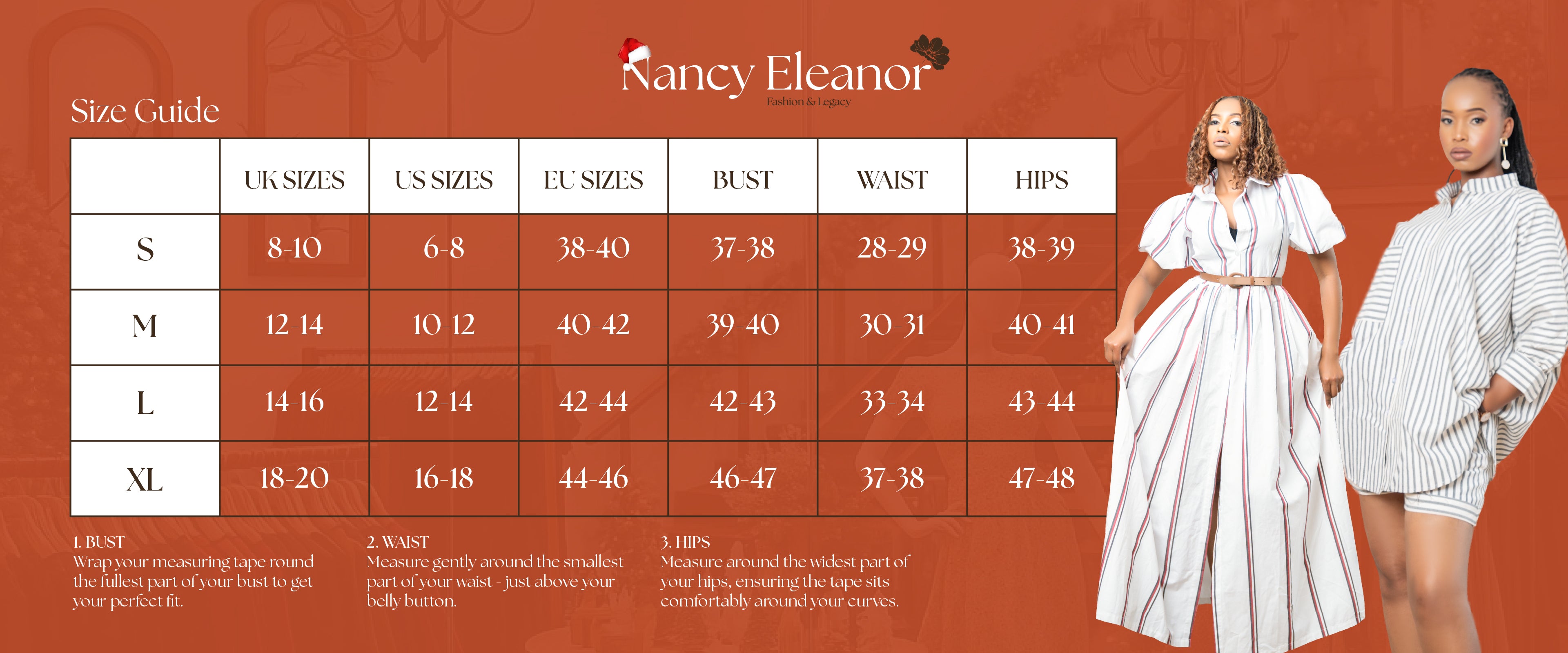 Nancy Eleanor is a Kenyan-born premium fashion house built on the belief that elegance and strength belong in every woman’s wardrobe. Named after our founder’s mother, Nancy, and the daughter she hopes for, Eleanor, the brand is rooted in legacy, love, and the power of women across generations.