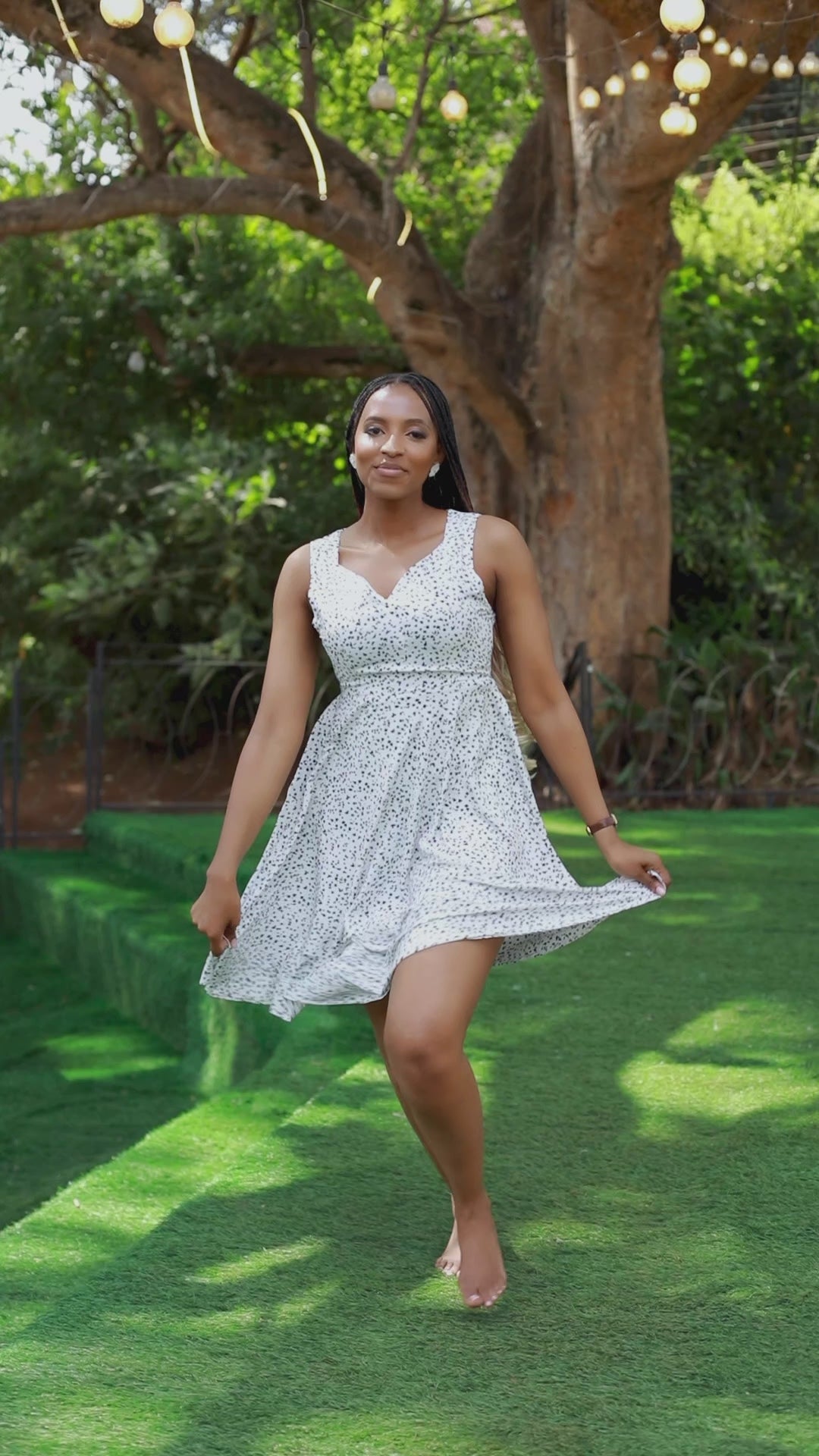 Bring joy to your everyday moments with this charming white mini dress, sprinkled with delicate black abstract dots. Designed with a flattering sweetheart neckline and a cinched waist, it flows effortlessly into a flirty A-line hem perfect for brunch dates, garden parties, or a carefree stroll with the girls.