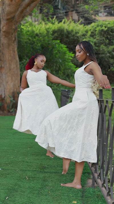 Elegance meets ease in the Ivory Bloom Midi, a timeless cream dress adorned with delicate floral embroidery. Designed with a flattering square neckline, fitted bodice, and a graceful A-line silhouette, it’s the perfect piece for moments when you want to radiate quiet luxury.
